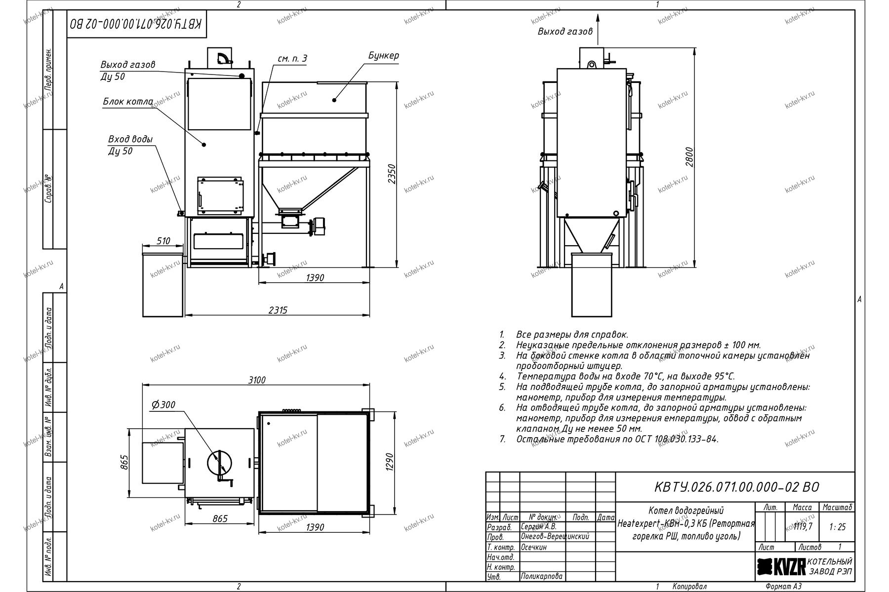 Конструкция автоматического котла на угле 300 кВт
